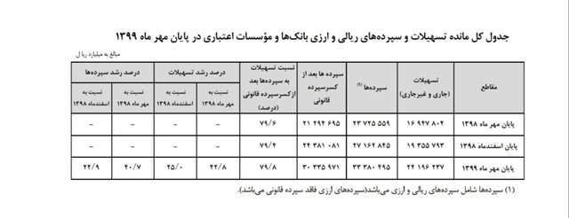 نسبت تسهیلات به سپردهها بعد از کسر سپرده قانونی ۷۹.۸ درصد است که نسبت به مقطع مشابه سال قبل و پایان سال قبل، به ترتیب ۰.۲ و ۰.۴ واحد درصد افزایش را نشان میدهد که نسبت مذکور در استان تهران ۹۳.۴ درصد و استان کهگیلویه و بویراحمد ۱۱۲.۴ درصد است.