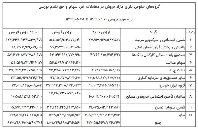 ● حقوقیهای بازار: شروع روند سقوط بازار با آزادسازی مرحله دوم (۳۰%) از سهام عدالت در ۱۹ مرداد ۱۳۹۹، آن هم تنها در کمتر از دو ماه از آزادسازی مرحله اول آن، بدون رعایت فاصله زمانی مناسب بین دو عرضه و فقدان زیرساختهای لازم و شرایط بازار، آتشی بر سرمایه و اعتماد مردمی بود و حقوقیهایی که در دوره رشد بازار علی رغم تعهدات قانونی، حاضر به عرضه سهام و ایجاد تعادل در عرضه و تقاضا نبودند در اقدامی هماهنگ و در اوج قیمتها بر خلاف تعهدات و الزامات قانونی بازارگردانی، اقدام به عرضههای سنگین (موسوم به عرضههای آبشاری) میکنند.