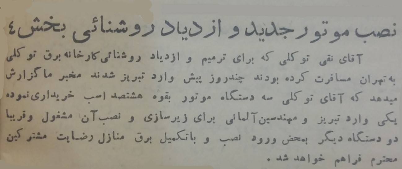 نقش غیر مستقیم مرحوم حاج نقی کبریت ساز توکلی در توسعه صنعت تبریز