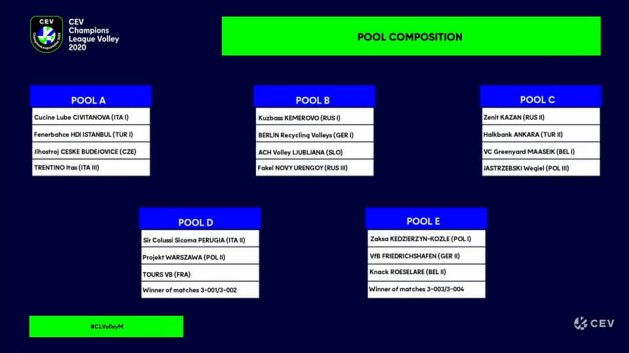 به گزارش نصر به نقل از فارس، رقابت”های والیبال لیگ قهرمانان اروپا قرعه”کشی شد و تیم”های حاضر در این مسابقات حریفان خود را شناختند. براساس این قرعه”کشی که در صوفیه بلغارستان انجام شد تیم”ها در پنج گروه چهار تیمی تقسیم بندی شدند.