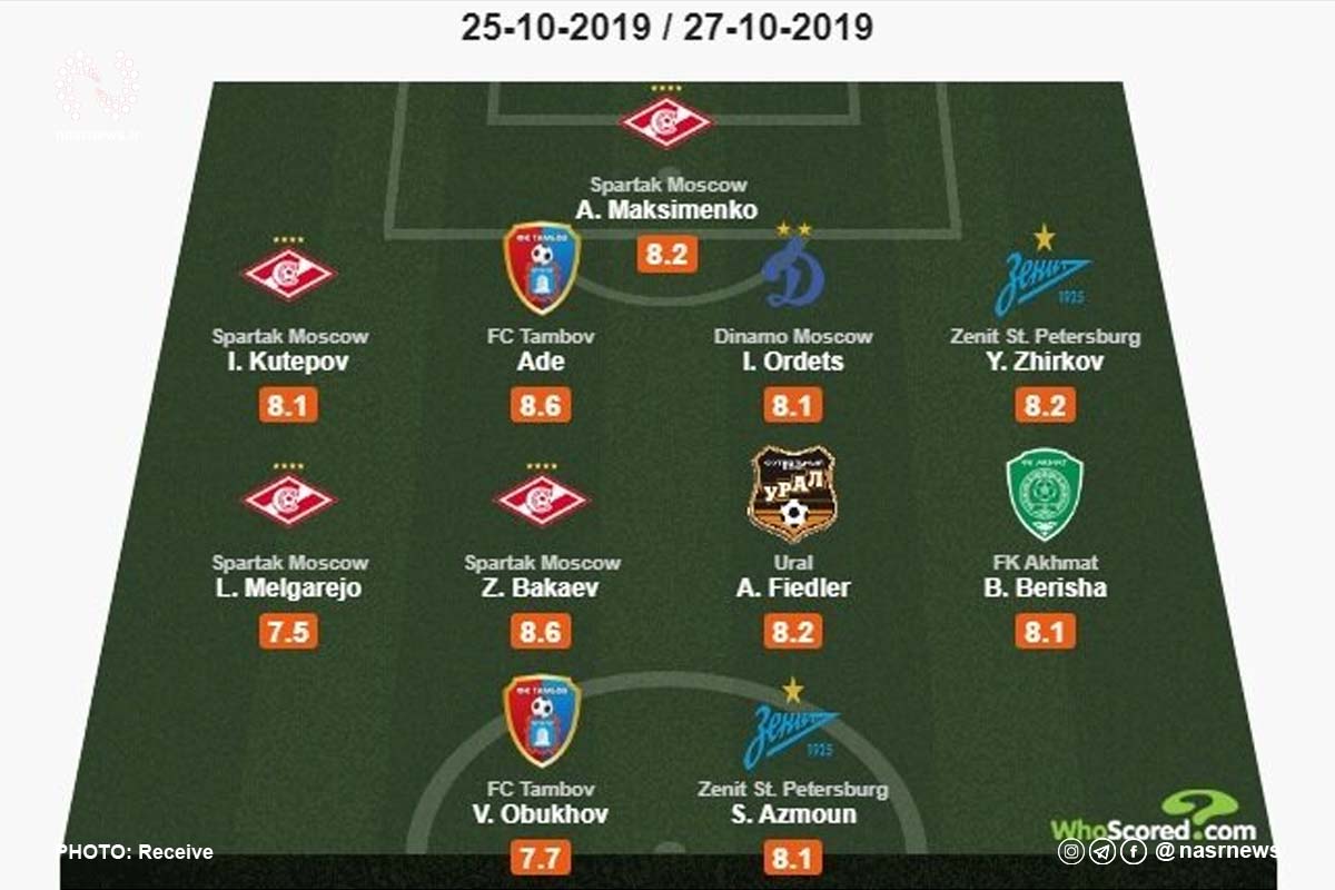بر این اساس، ستاره ملیپوش ایرانی باشگاه زنیت سن پترزبورگ با کسب امتیاز قابل توجه ۸.۱ به عنوان مهاجم در این تیم منتخب قرار گرفت.