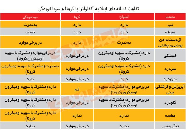 نشانههای مشابه ابتلا به اومیکرون، آنفلوآنزا و حتی سرماخوردگی مردم را سردرگم کرده است و برخی با تصور ابتلا به سرماخوردگی نهتنها به پزشک مراجعه نمیکنند و تست پیسیآر نمیدهند بلکه حتی اصول قرنطینه را هم رعایت نمیکنند و به فعالیتهای روزانهشان ادامه میدهند؛ اتفاقی که میتواند منجر به افزایش بیماریهای ویروسی و تنفسی از جمله آنفلوآنزا و کرونا شود. محمدنصر دادرس، کارشناس مسئول برنامه مراقبت آنفلوآنزای وزارت بهداشت، درباره این که مردم چطور میتوانند این سه بیماری را از هم تفکیک دهند، میگوید: «از نظر بالینی این بیماریها نشانههای مشابه دارند اما از دید پزشکی میتواند علائم خفیف و شدیدبودن آنها، ملاک قرار بگیرد. مردم به صورت طبیعی نمیتوانند این بیماریها را از هم تشخیص دهند.»