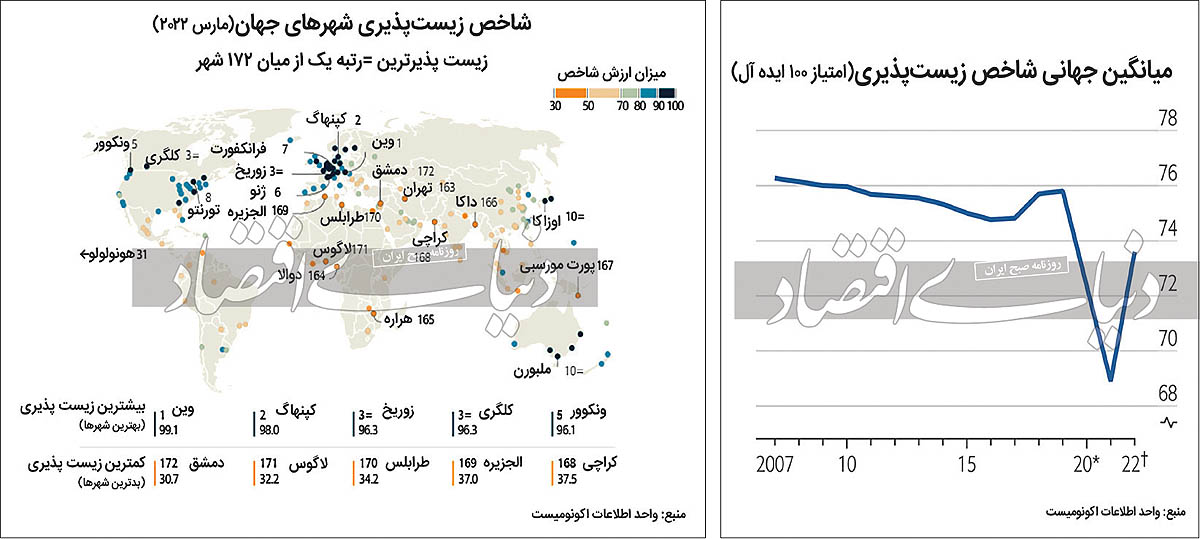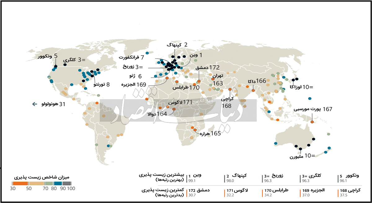 «اکونومیست» نقشه ۲۰۲۲ «کیفیت زندگی» در ۱۷۲ شهر جهان را منتشر کرد