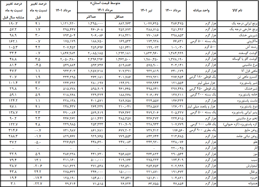 قیمت اقلام خوراکی در مردادماه اعلام شد: