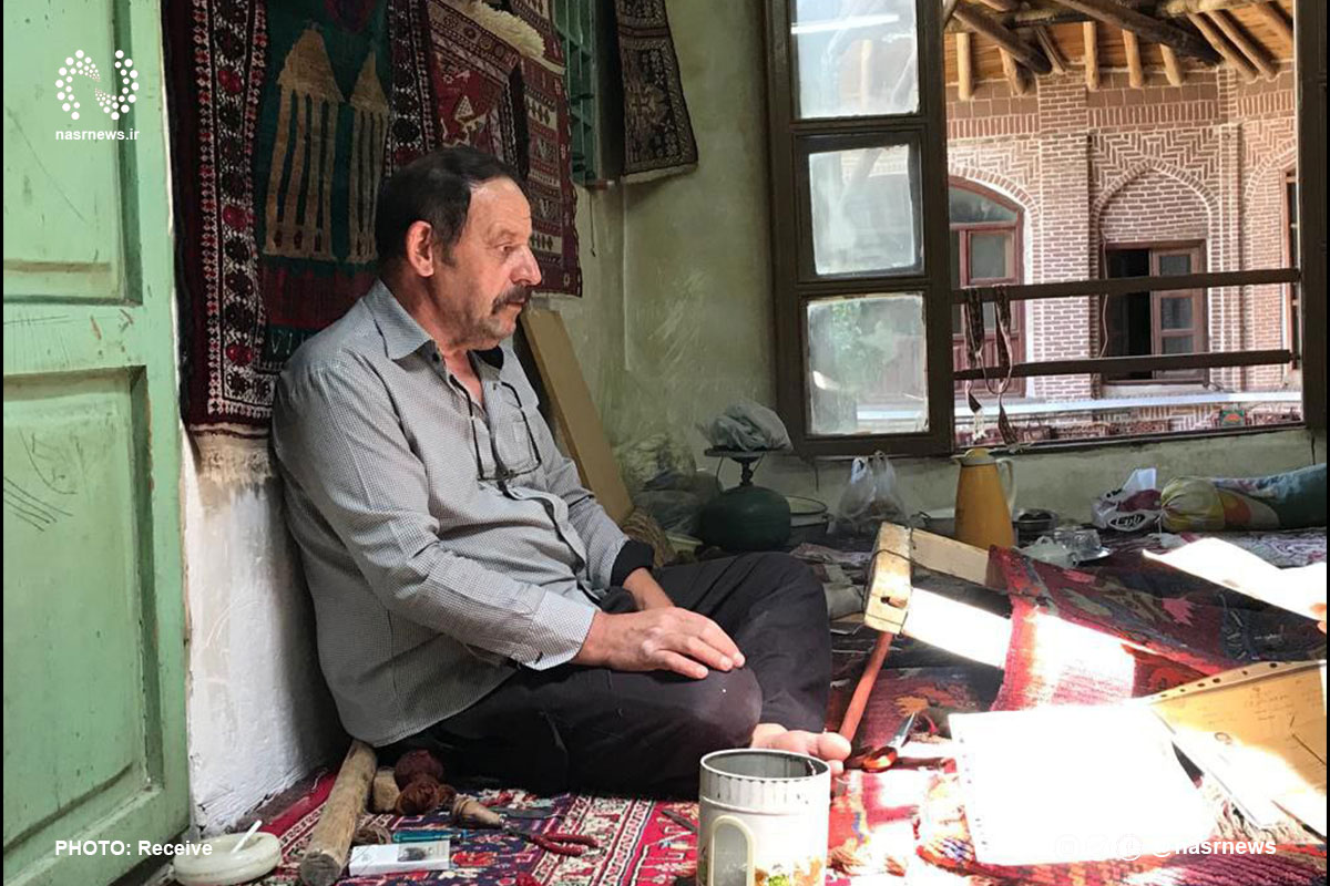 از پلههای بلند و پرپیچ و تیز سرای حاج جلیل که بالا میروم، در سکوتی آرامشبخش با بوی شمعدانیهای این سرا، مردی در وسط حجرهای که نور آفتاب از بالا به سرش میزند، سرش را روی قالی بزرگ و زیبایی که با پاهایش نگهداشته است، خم کرده که در چند بخش آن فقط پودهای متلاشیشده باقی مانده است و با دقت تمام به آن نگاه میکند و در حال رفو است؛ بهطوری که هنوز متوجه حضور من نشده است.
