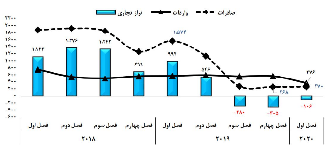 نمودار 1): کاهش روند صادرات ایران به ترکیه.2018 تا 2020