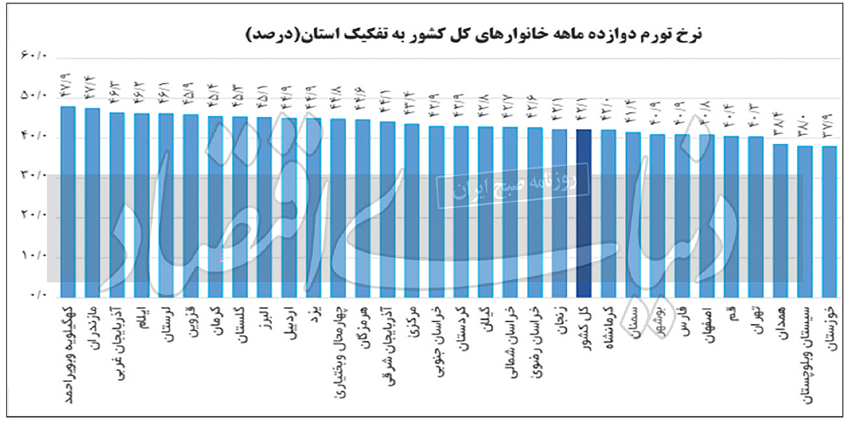 به گزارش نصر، آمارهای رسمی تورم استانی بیانگر آن است که در آخرین ماه تابستان، بیشترین تورم ماهانه خانوارهای کشور مربوط به استانهای لرستان با 3/ 3درصد، سیستان و بلوچستان با 2/ 3درصد و قم با 3درصد تورم بوده است. همچنین آذربایجان غربی با 7/ 59درصد، اردبیل با 2/ 57درصد و لرستان با 9/ 56درصد دارای بیشترین تورم نقطه به نقطه در استانهای کشور بودهاند. در این ماه با وجود سبقت گرفتن تورم ماهانه خدمات از تورم کالا، تورم نقطه به نقطه بیش از 90درصدی خوراکیها و آشامیدنیها در استان لرستان موجب شده است تورم نقطه به نقطه این استان در صدر استانهای کشور قرار بگیرد. تورم ماهانه این استان نیز جزء 3 استان دارای بیشترین تورم در شهریورماه بوده است. در واقع میتوان گفت به صورت کلی استانهای کمدرآمد، دارای تورم بالاتری بودهاند.