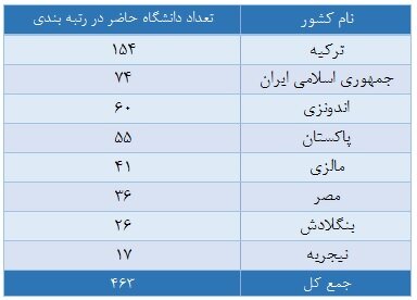 رتبه دوم ایران در بین دانشگاههای کشورهای گروه D8 بعد از ترکیه