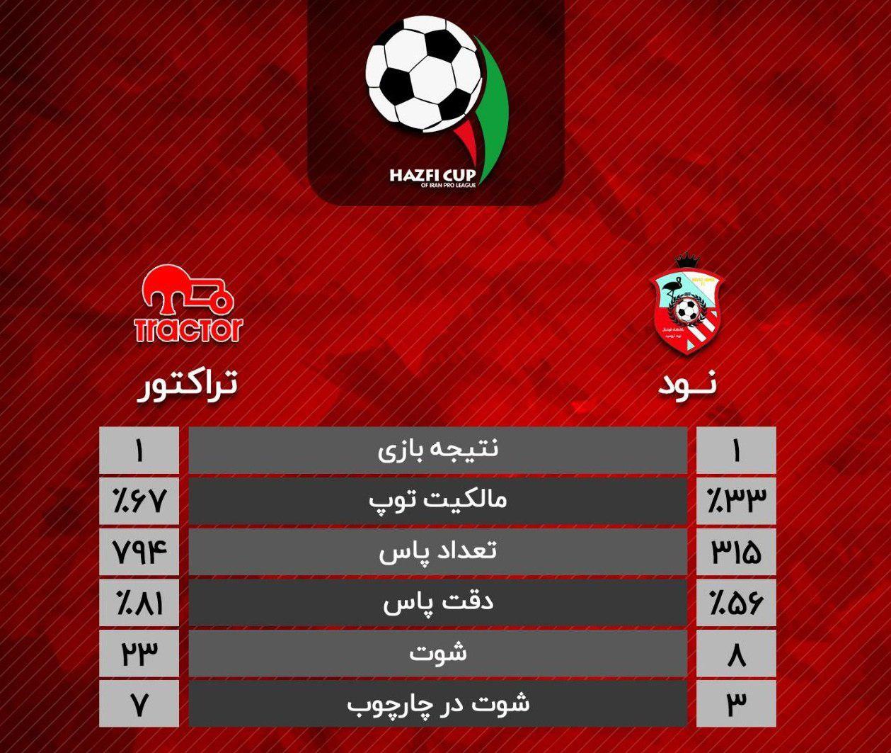 گفتنی است؛ شاگردان دنیزلی در بازی دیروز ۲۳ شوت و بازیکنان نود ، هشت شوت زدند که هفت شوت تراکتوریها و سه شوت حریف داخل چارچوب بود.