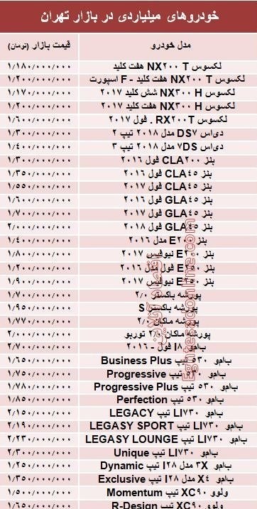 نصر: آنچه در زیر میآید قیمت روز انواع خودروهای میلیاردی در سطح بازار پایتخت طی فروردین ماه ۹۸ است.