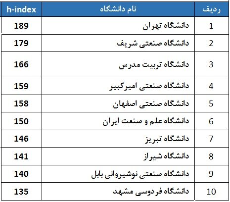 ۱۰ دانشگاه برتر ایران بر اساس شاخص H