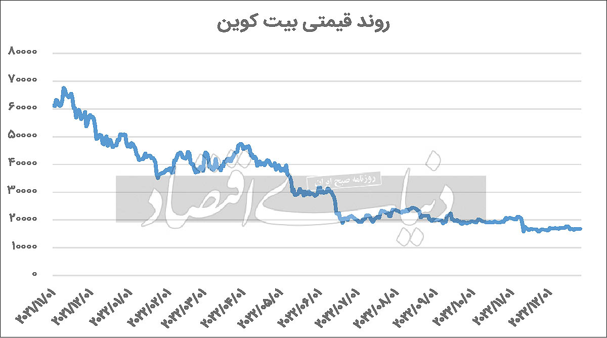 در اواخر سال 2021 ارزهای دیجیتال مهم جهانی از جمله بیتکوین و اتریوم از محبوبیت فراوانی در میان سرمایهگذاران برخوردار بودند و در نوامبر سال مذکور لیدر بازارهای ریسکی توانست با صعود به کانال 70 هزار دلاری بالاترین سطح قیمتی این رمزارز را در تاریخ بیتکوین ثبت کند. اما بیتکوین پس از به قله رسیدن، با ترس از افزایش نرخ بهره در ماههای آتی در خصوص مهار تورم با سطح 7 درصدی، در مسیر نزولی قرار گرفت. تداوم سیاستهای انقباضی به سیاستگذاران این پیام را ابلاغ کرد که واکنش منفی بیتکوین در پی ترس از سیاستهای فدرال رزرو بجا بوده است. علاوه بر سیاستهای پولی انقباضی توسط جرمی پاول، ورشکستگی صرافی FTX نیز سبب شد این رمزارز 75 درصد از ارزش خود را از نوامبر سال 2021 از دست بدهد و به کانال 15 هزار دلاری سقوط کند. در ماه اخیر نیز این ارز دیجیتال بالای کانال 16 هزار دلاری در حال نوسان است، زیرا شاخص دلار جهانی از کاهش سرعت نرخ بهره که در ماه اخیر 5/ 0 واحد درصد افزایش یافت، کاهش پیدا کرد و از کانال 107 واحدی به کانال 102 واحدی سقوط کرد.