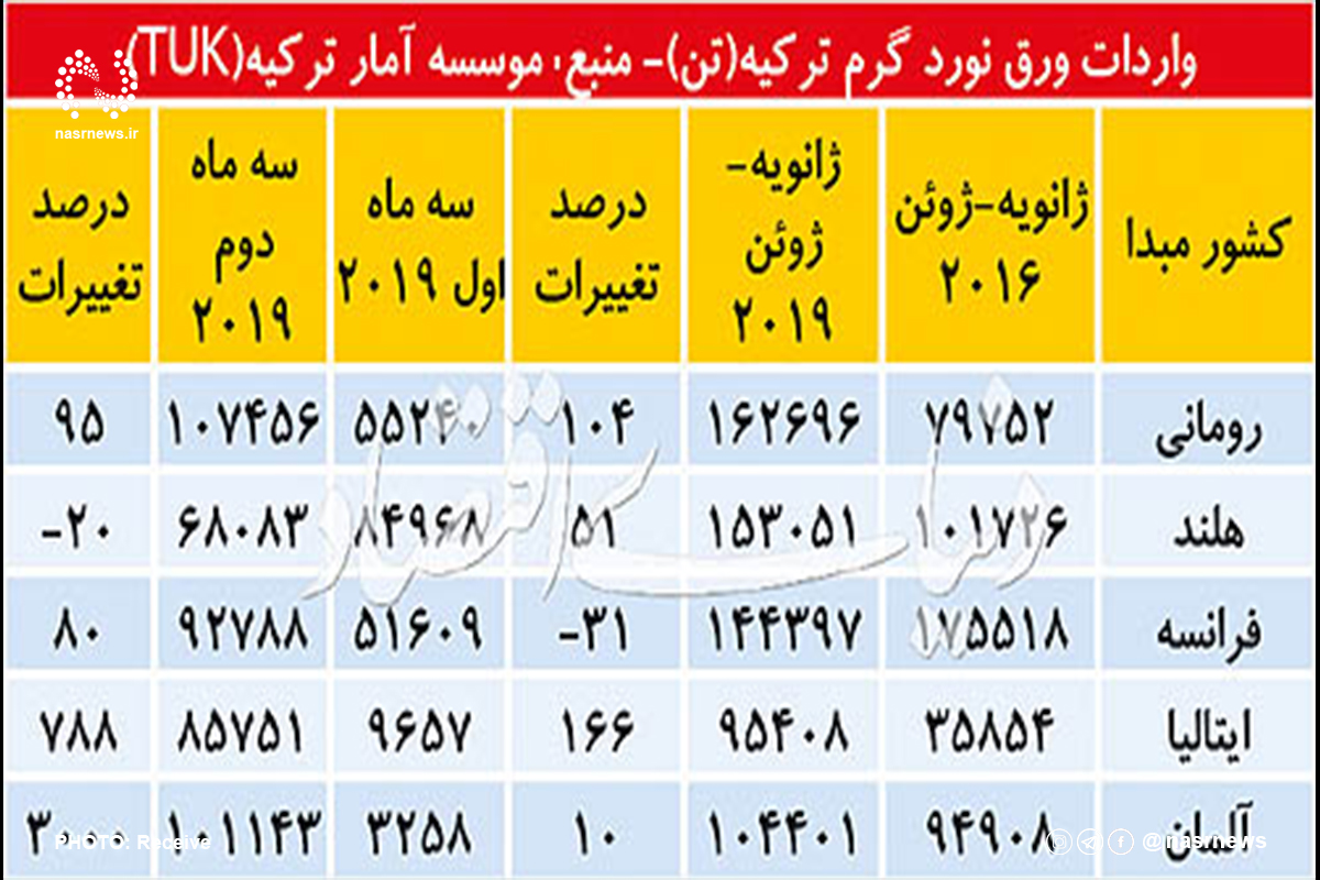 به‌طور کلی در ترکیه، واردات ورق نورد گرم از فولادسازان اروپایی در نیمه اول ۲۰۱۹، بالغ بر ۶۰۰ هزار تن بوده‌ که در سه ماه پایانی نسبت به سه ماه ابتدایی ۹۶ درصد رشد داشته؛ همچنین براساس گزارش یک منبع ترکیه‌ای، متوسط قیمت این محصولات وارداتی پایین‌تر از قیمت تولیدکنندگان چینی بوده‌است.