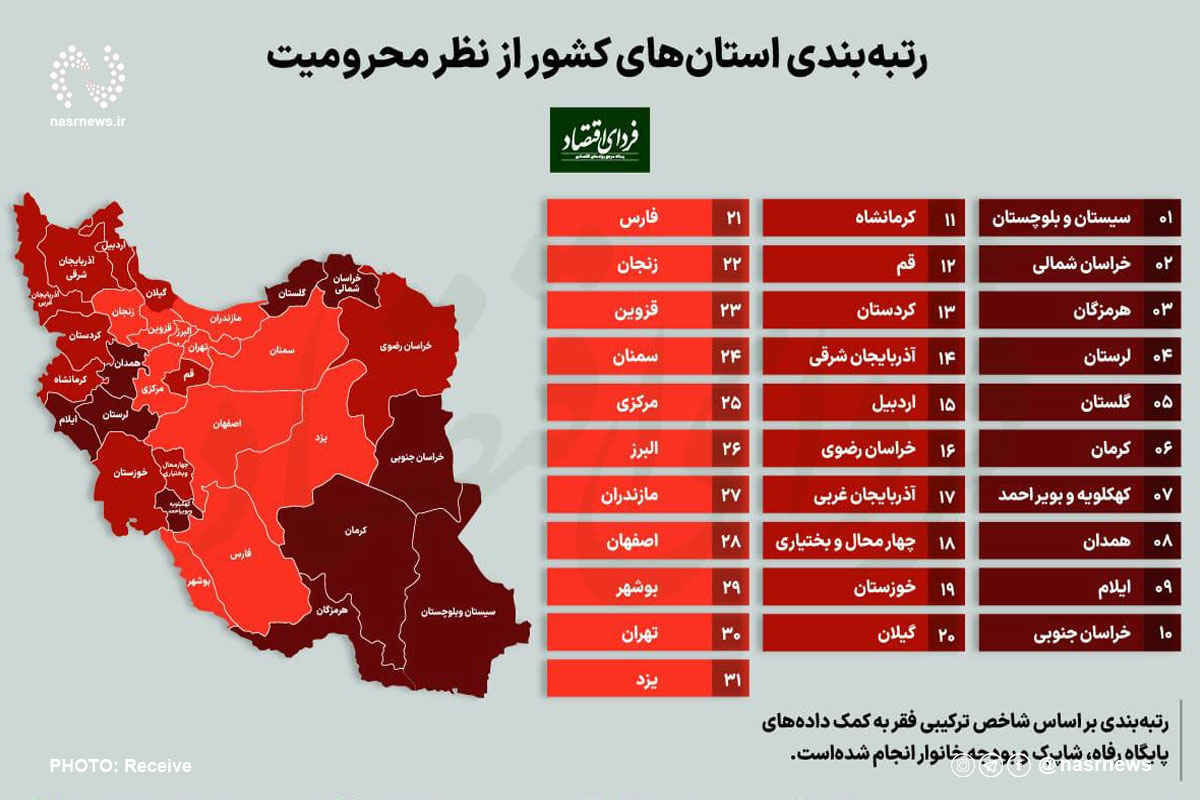 گزارش مستند دیگر منتشره از سوی وزارت کار و رفاه اجتماعی با عنوان "پایش فقر در سال 1399 " نشان می هد که در رتبه بندی استانها در نرخ محرومیت در سال 99 آذربایجان شرقی در بین 31 استان کشور رتبه ی یازدهم، استان اردبیل در رتبه هیجدهم و آذربایجان غربی در رتبه بیست و ششم قرار گرفته است .قصور بانک های خصوصی استانهای شمالغرب کشور در تجهیز و تخصیص منابع مالی مردم و بنگاههای اقتصادی پایین تر از ۴ درصد وعقب ماندگی در صنعت حمل ونقل  و جابجایی مسافر با ناوگان استاندارد ؛ گردش ناچیز حدود ۱۰ درصدی ده هزار میلیاردتومانی مس سونگون در منطقه؛سهم ناچیز ۲ درصدی معدن در اقتصاد محلی ؛سهم غیر قابل قبول استانهای شمالغرب از وام های کلان دولتی و تسهیلات ارزان ؛حضور نه چندان موفق کالا و خدمات تولیدی صنایع آذربایجان در بازار مصرف کشورهای همسایه،روانی ۲۸ رودخانه مرزی و برداشت جزئی از حقابه ،و حتی نمود ضعیف نماینده گان در کمیسیون های مجلس و دهها مورد مشابه قصوری است که گریبان اقتصاد و توسعه منطقه را گرفته است.