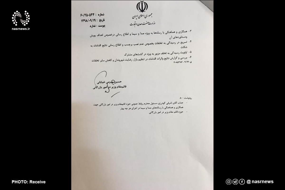 معاون محترم وزیر و رئیس سازمان تعزیرات حکومتی