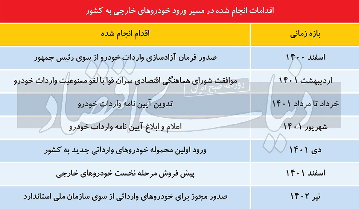 اسفند ۱۴۰۰ بود که رئیسجمهور با حضور در ایرانخودرو فرمان آزادسازی واردات خودرو را صادر کرد. ابراهیم رئیسی در آن روز فرمانی هشتمادهای برای بخش خودرو صادر کرد که یکی از بندهای آن، آزادسازی واردات پس از حدود چهارسال بود. حدود دوماهونیم پس از صدور این فرمان، شورای هماهنگی اقتصادی سران قوا که در بهار ۹۷ و پس از خروج آمریکا از برجام، واردات خودرو را در راستای مدیریت منابع ارزی ممنوع کرد، حکم نهایی درباره آزادسازی واردات را -به واسطه عدمتمدید ممنوعیت موردنظر- داد. این اقدام شورای هماهنگی اقتصادی سران قوا مجوز لازم -نه کافی- را به وزارت صنعت، معدن و تجارت داد تا آزادسازی واردات خودرو را وارد فاز اجرایی کند. با این حال حدود۴ماه طول کشید تا این وزارتخانه آییننامه واردات خودرو را اعلام و ابلاغ کرد.