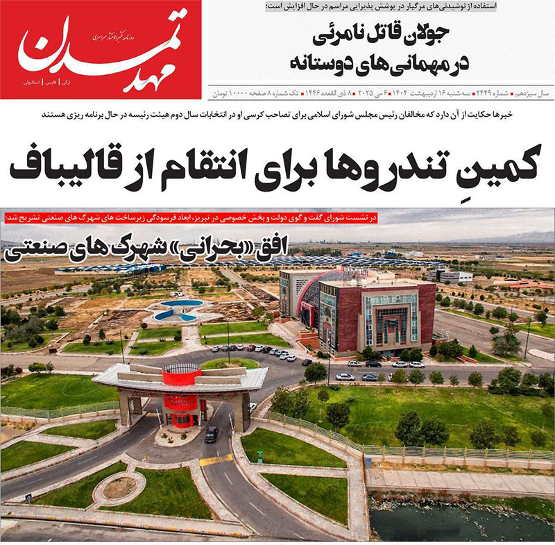 مطبوعات 16 اردیبهشت ماه 1404 تبریز