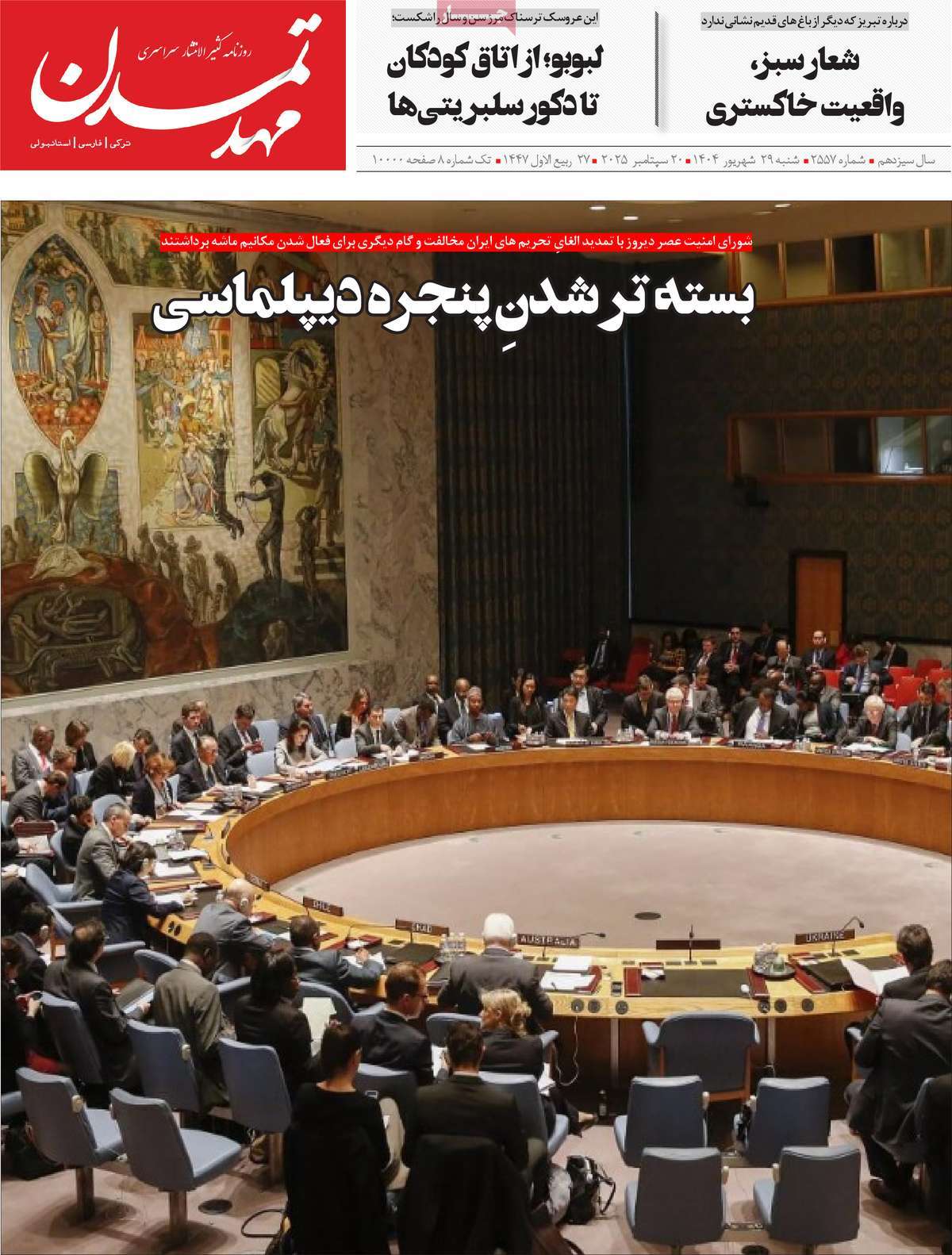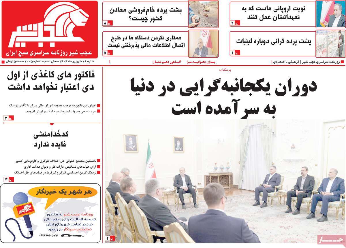 مطبوعات 29 شهریور ماه 1404 تبریز