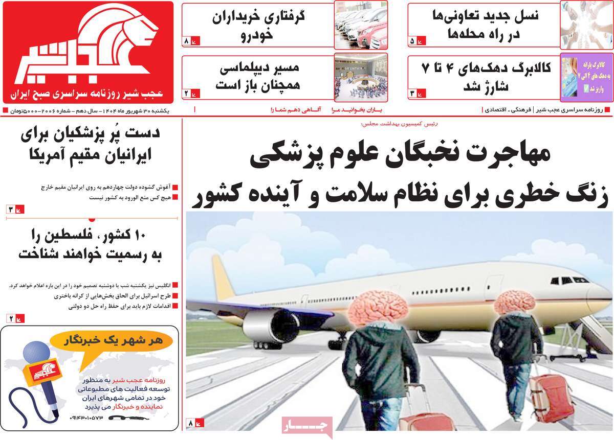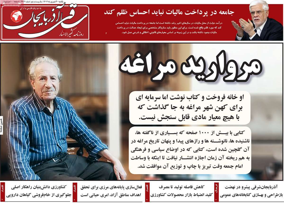 مطبوعات 30 شهریور ماه 1404 تبریز