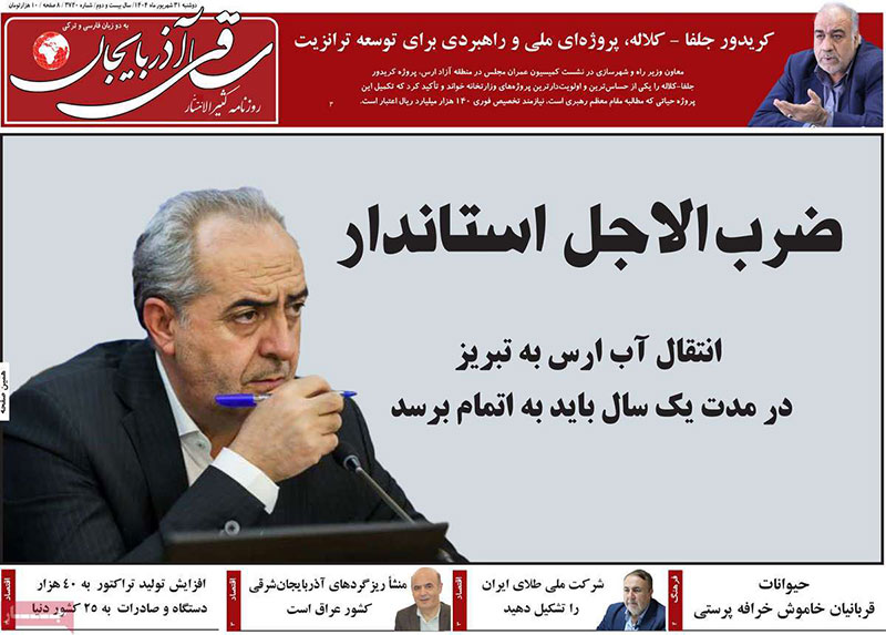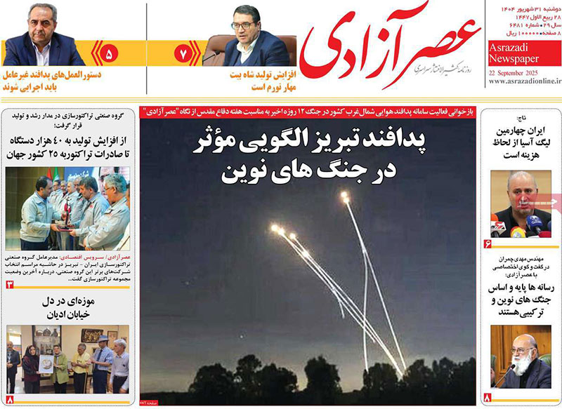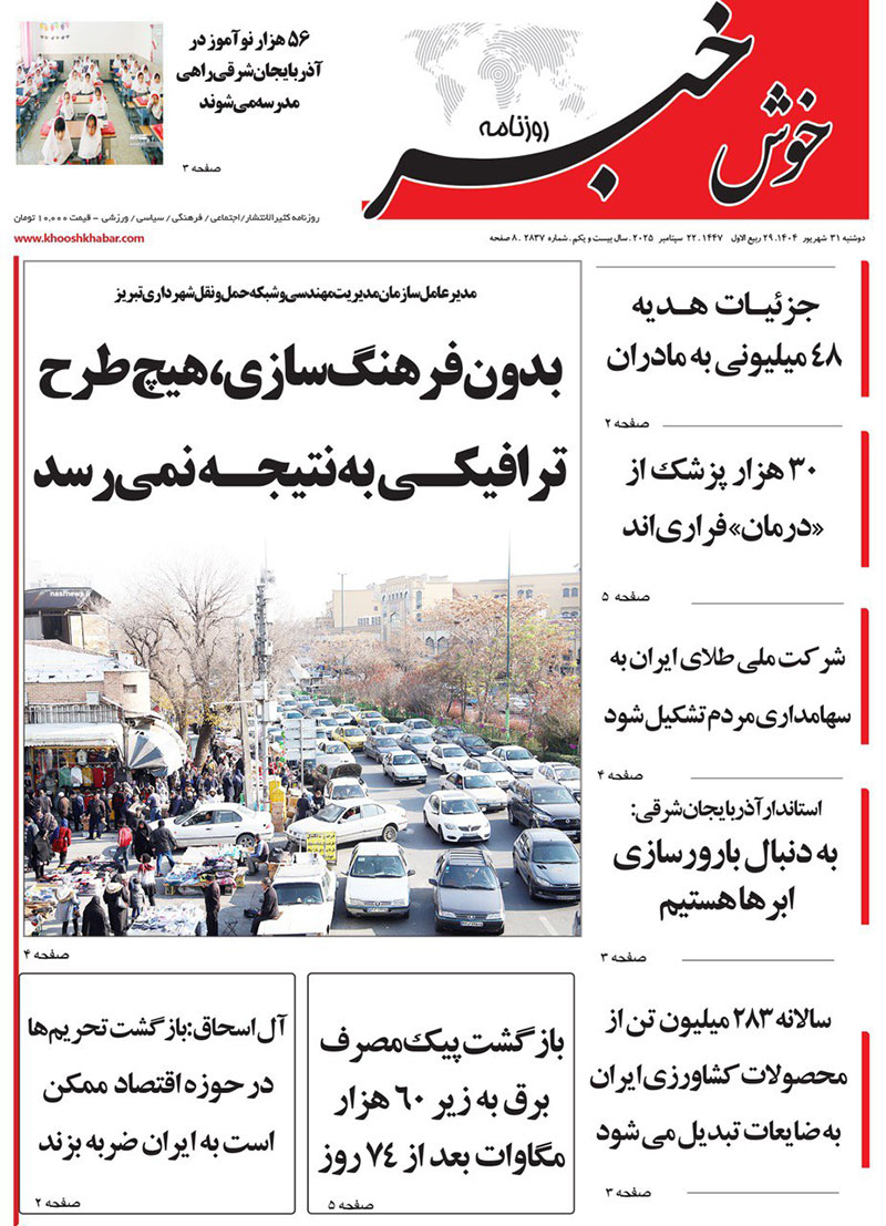 مطبوعات 31 شهریور ماه 1404 تبریز