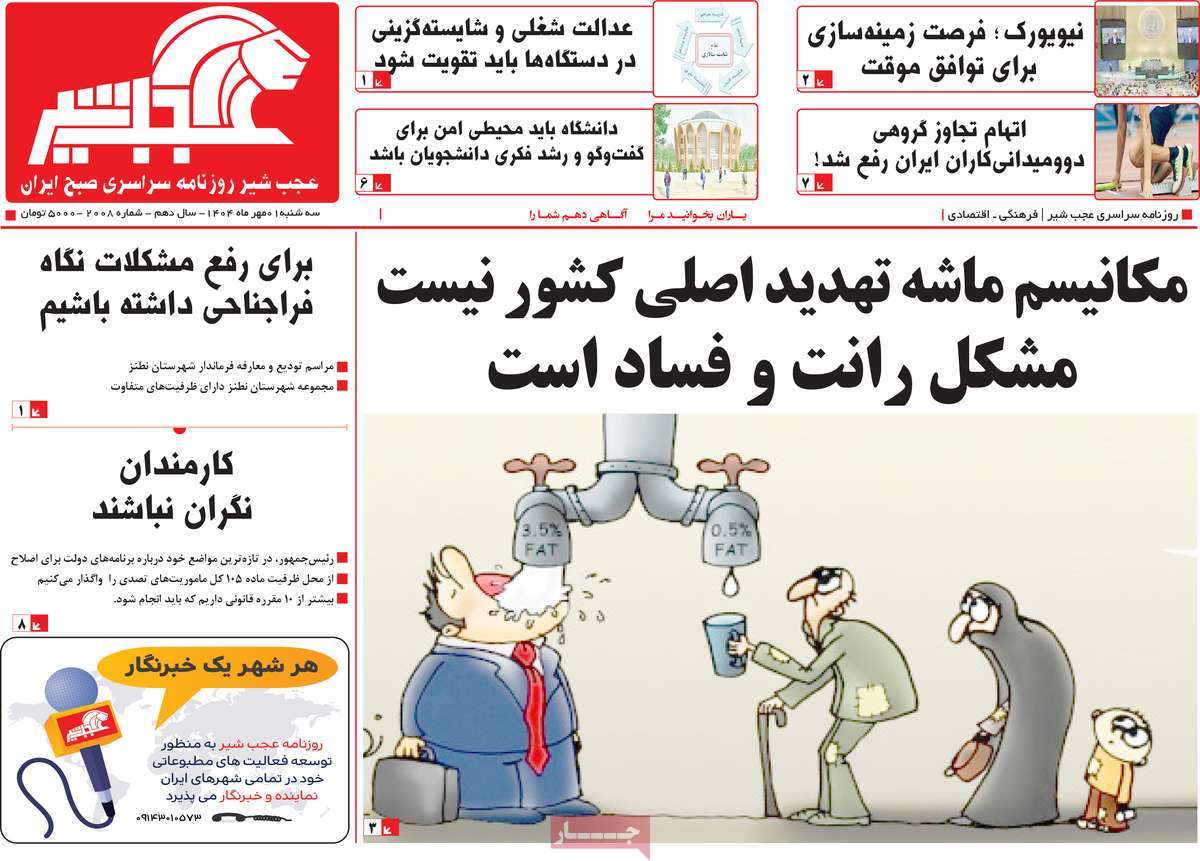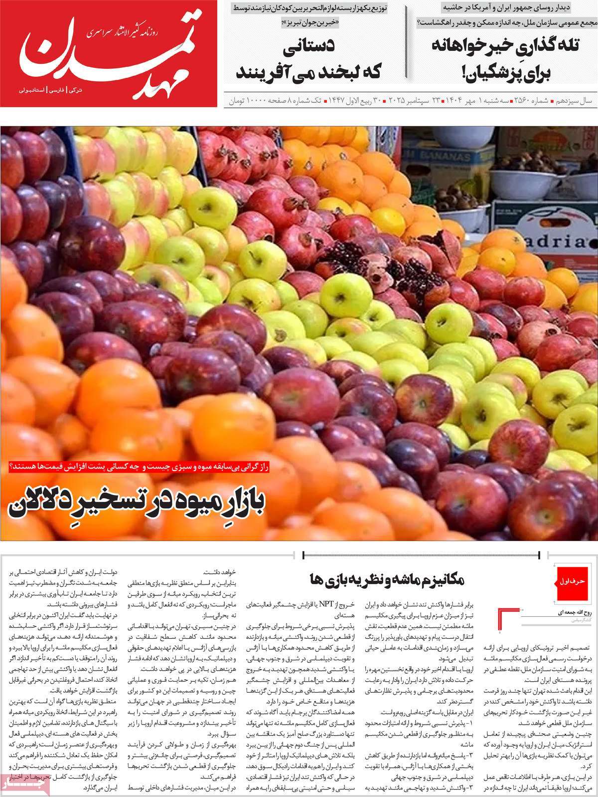 مطبوعات 1 مهر ماه 1404 تبریز