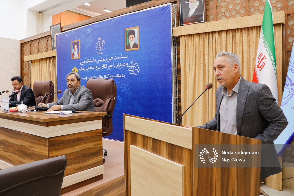 نصر: نشست خبری محمدتقی اعلمی، رئیس دانشگاه تبریز صبح امروز به مناسبت آغاز سال تحصیلی جدید با حضور جمعی از خبرنگاران، اصحاب رسانه و مدیران دانشگاهی در سالن جلسات ریاست دانشگاه برگزار شد. در این نشست، اعلمی با ارائه گزارشی از دستاوردها و فعالیتهای دانشگاه در سال گذشته، به تبیین برنامهها و رویکردهای دانشگاه تبریز در حوزههای آموزش، پژوهش، فناوری و ارتباط با جامعه در سال تحصیلی جدید پرداخت و به پرسشهای خبرنگاران پاسخ داد.