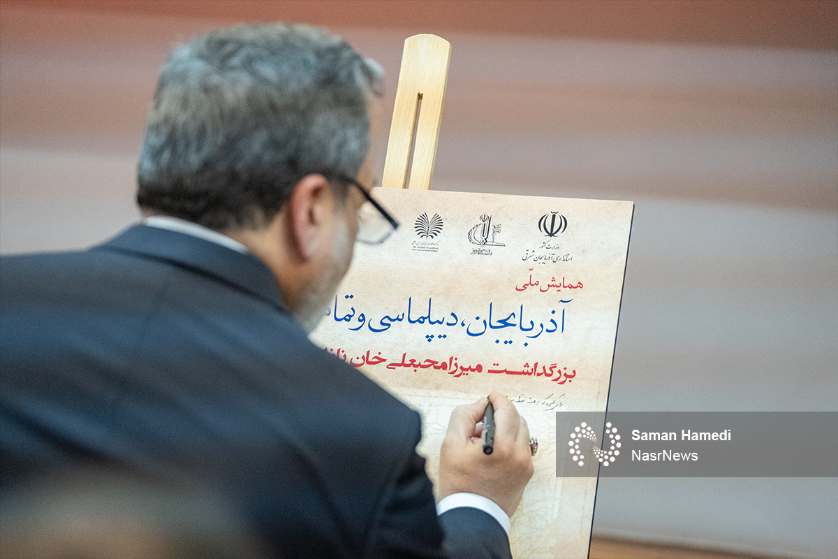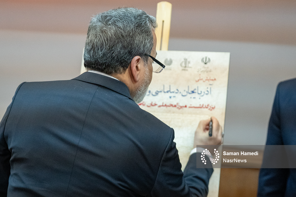 نصر: عباس عراقچی وزیر امورخارجه با حضور در همایش ملی آذربایجان، دیپلماسی و تمامیّت ارضی ایران و بزرگداشت میرزا محبعلیخان ناظمالملک مرندی یکانلو در دانشگاه تبریز سخنرانی کرد.