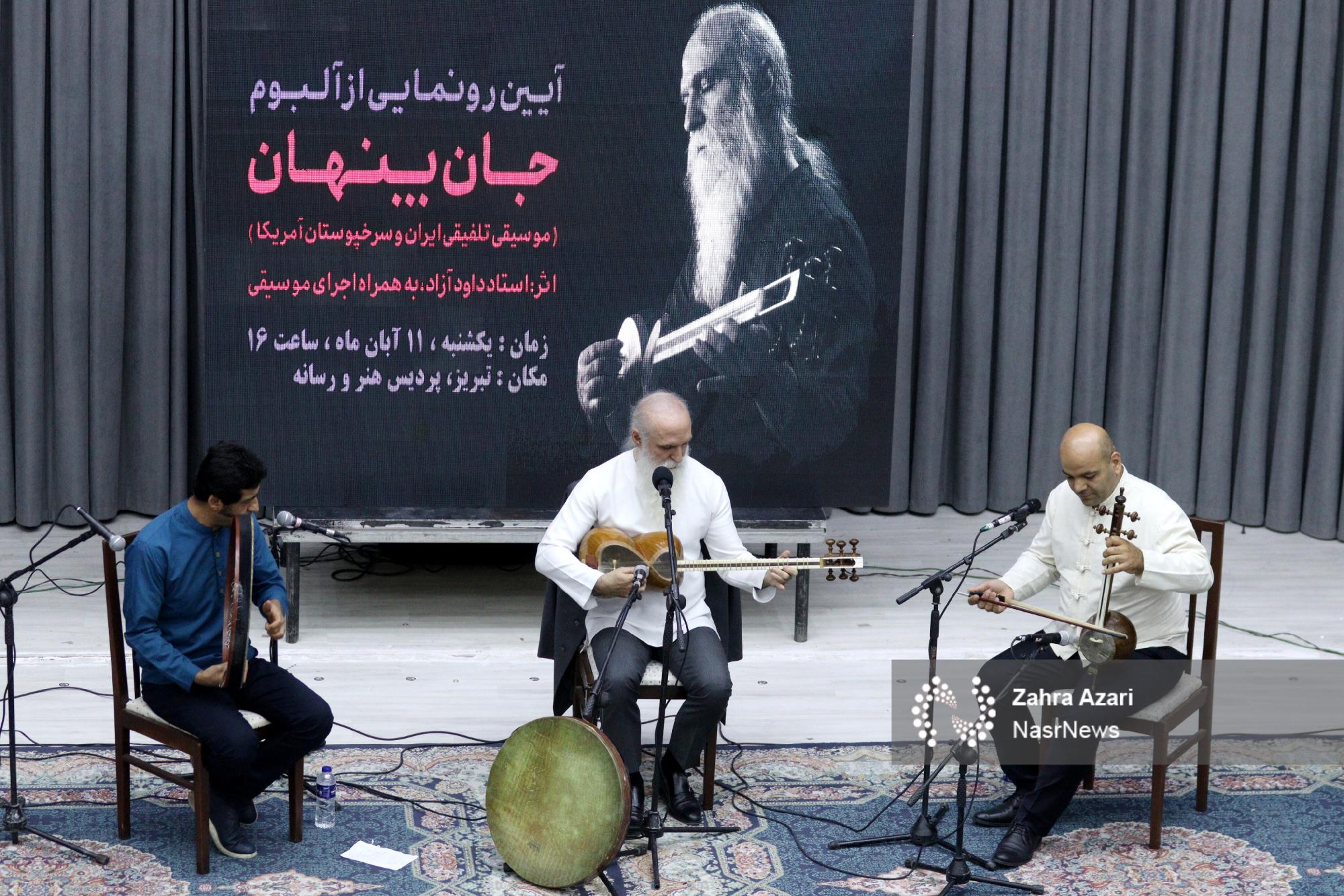 نصر: آلبوم موسیقی «جان پنهان» اثر استاد داوود آزاد، که شامل موسیقی تلفیقی ایران و سرخپوستان آمریکا است همراه با اجرای زنده موسیقی در پردیس هنر و رسانه تبریز، رونمایی شد. عکس ها از زهرا آذری