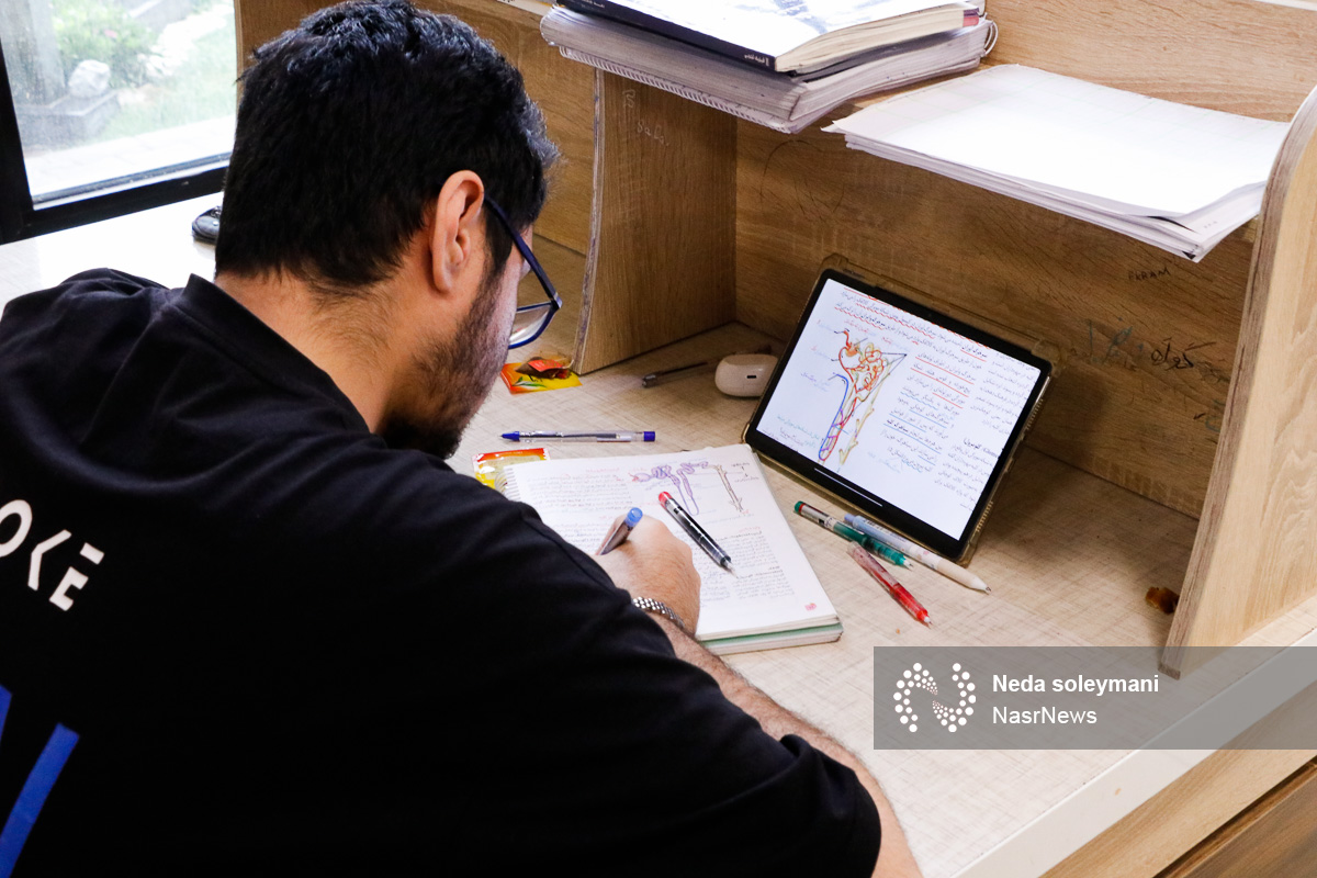 نصر: در سکوت قرائت‌ خانه، صفحات کتاب‌ ها آرام آرام ورق می‌خورند و کمی آن‌سوتر در بخش نابینایان، واژه‌ها نه خوانده، بلکه لمس می‌شوند؛ عکاس نصر به مناسبت روز کتاب و کتابخوانی به کتابخانه مرکزی تبریز رفته است تا لنز دوربین خود را این‌بار روی کتاب و کتابخوانی زوم کند.