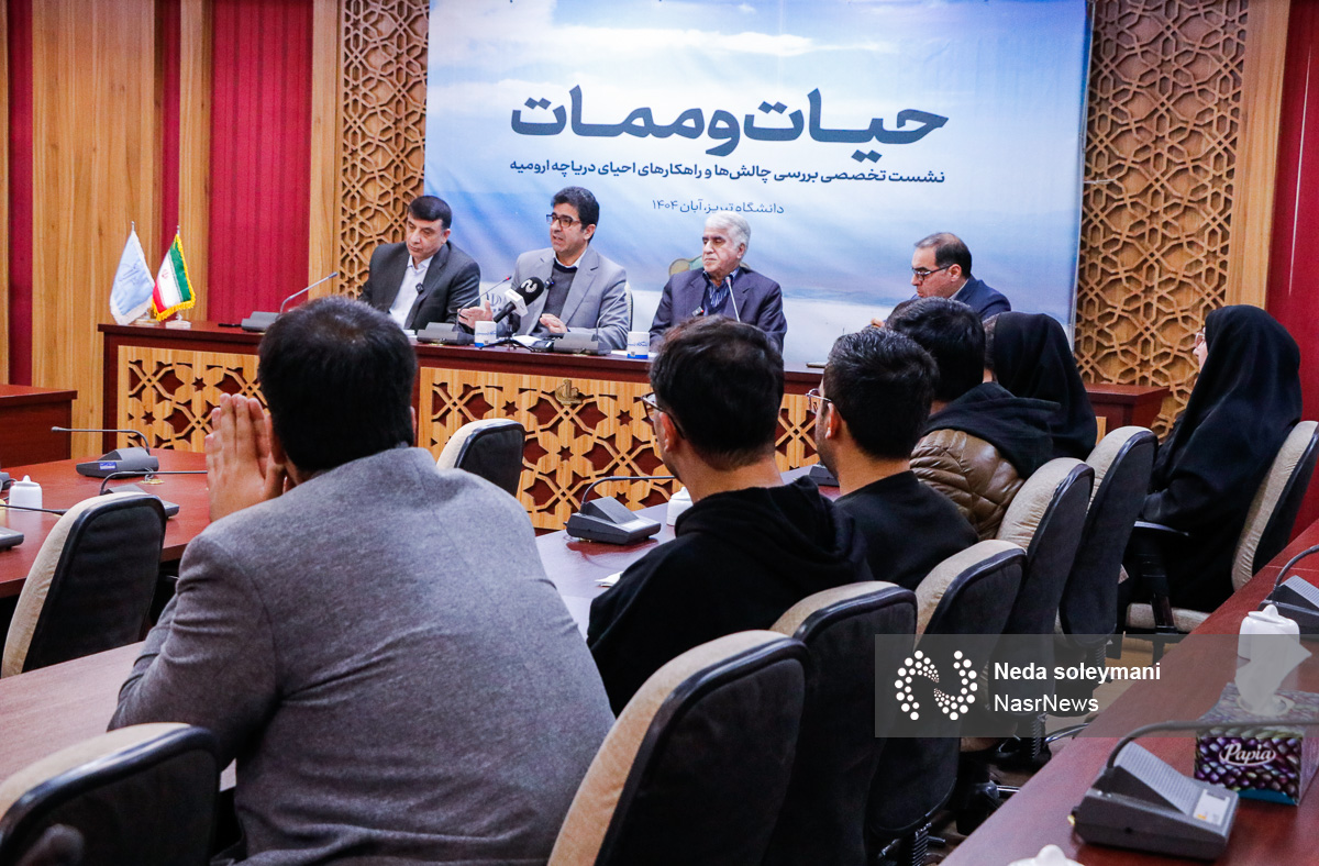 نصر: اولین نشست بررسی چالش‌ها و راهکارهای احیای دریاچه ارومیه در دانشگاه تبریز با عنوان «حیات و ممات» با حضور اعضای هیأت علمی دانشگاه تبریز، جمعی از دانشجویان و با همکاری پایگاه خبری، تحلیلی نصر و روابط عمومی دانشگاه تبریز در سالن شهید باکری این دانشگاه برگزار شد.