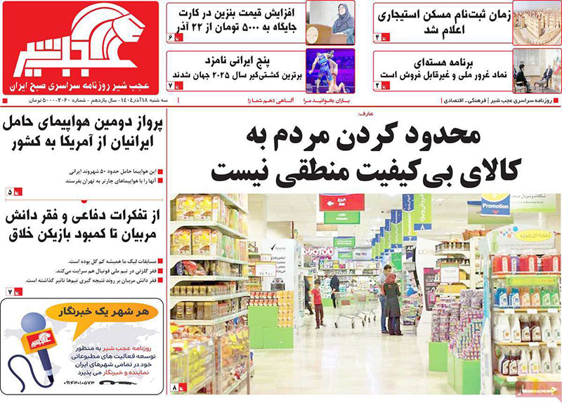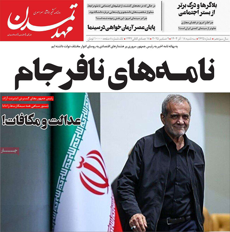 مطبوعات 18 آذر ماه 1404 در تبریز