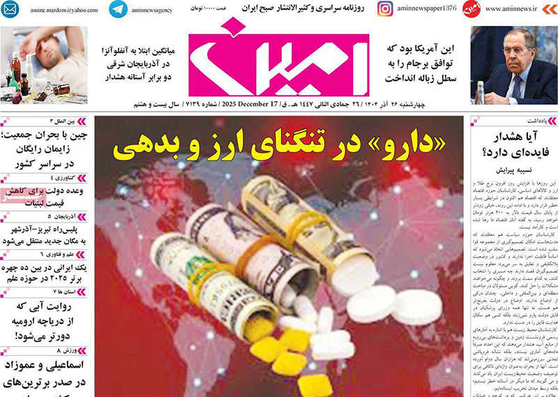 مطبوعات 26 آذر ماه 1404 تبریز