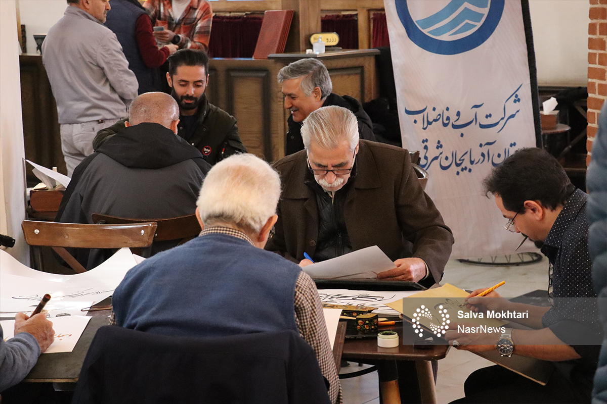 نصر: کارگاه خوشنویسی با موضوع صرفه جویی در مصرف آب به همت شرکت آب و فاضلاب آذربایجان شرقی در عمارت تاریخی ائل گولی تبریز و با حضور اساتید برجسته این رشته برگزار شد.