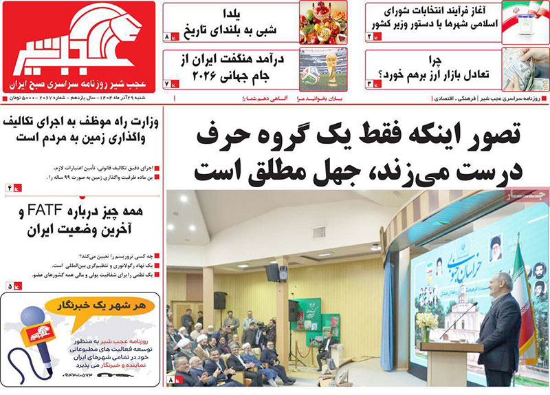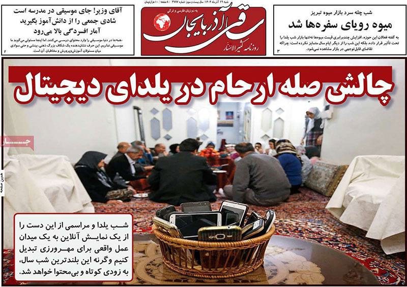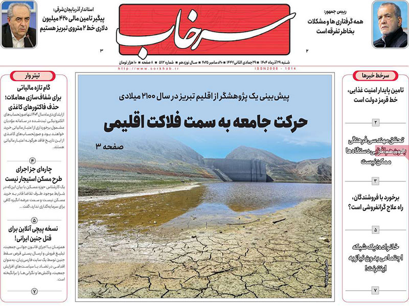مطبوعات 29 آذر ماه 1404 تبریز