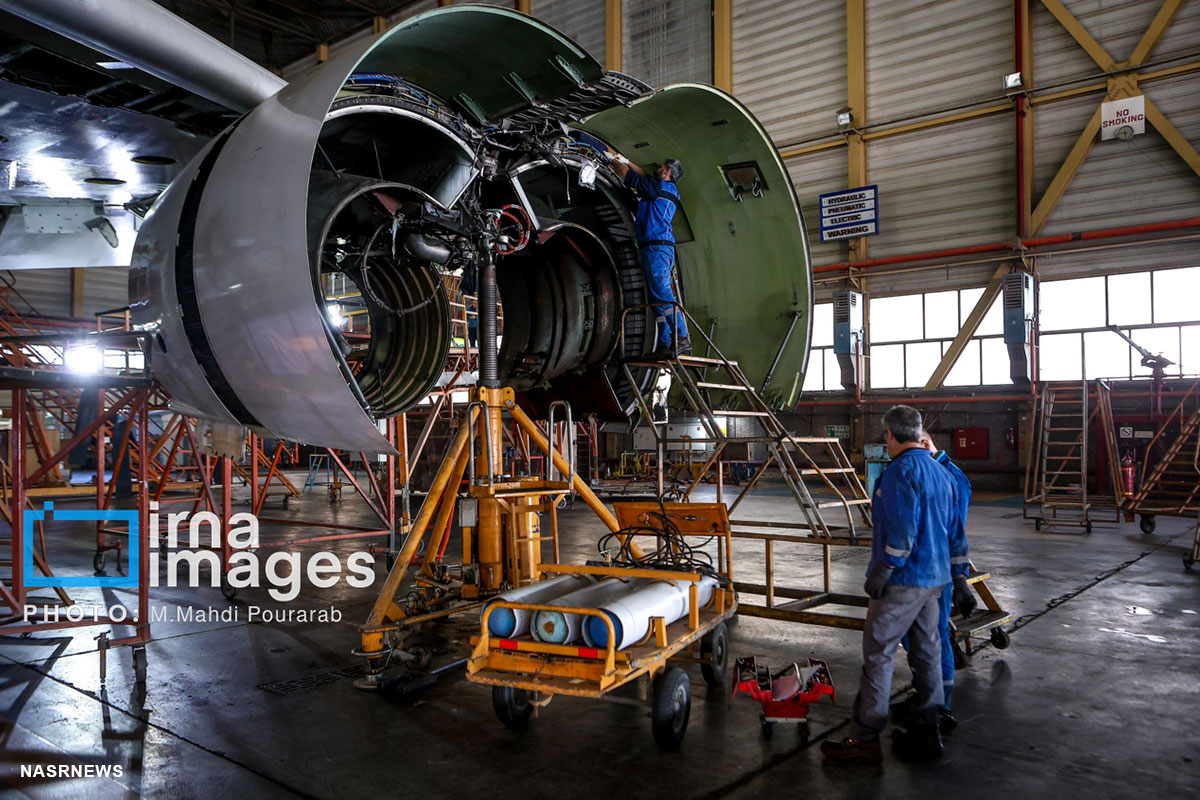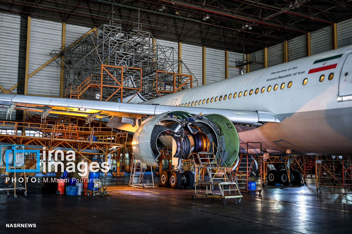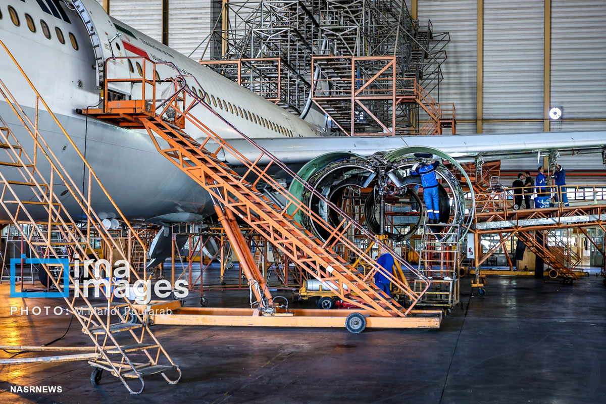 نصر: آشیانه ایران ایر مکانی است که هواپیماها برای انجام چک های دورهای سبک و سنگین وارد آن میشوند؛ فرآیندی پیچیده و زمانبر که گاه هفتهها و ماهها به طول میانجامد.