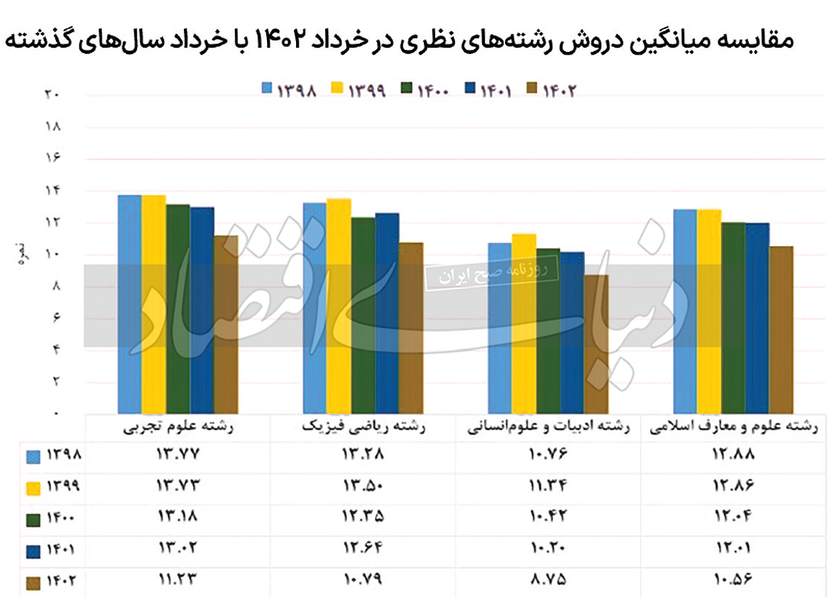 نصر: نخستین چراغ هشدار را سال گذشته علیرضا منادی، رئیس کمیسیون آموزش و تحقیقات مجلس روشن کرد. او میانگین معدل ۱۱.۵ دانشآموزان در کشور را هشداردهنده خواند و از مسوولان خواست برای تغییر این شرایط تصمیمات جدی بگیرند. با گذشت یکسال از این ماجرا، چندی پیش بار دیگر انتشار میانگین معدل دانشآموزان رشتههای ادبیات و علوم انسانی، علوم تجربی و ریاضی فیزیک از سال ۱۳۹۸ تا سال ۱۴۰۲ سروصدای زیادی برپا کرد.