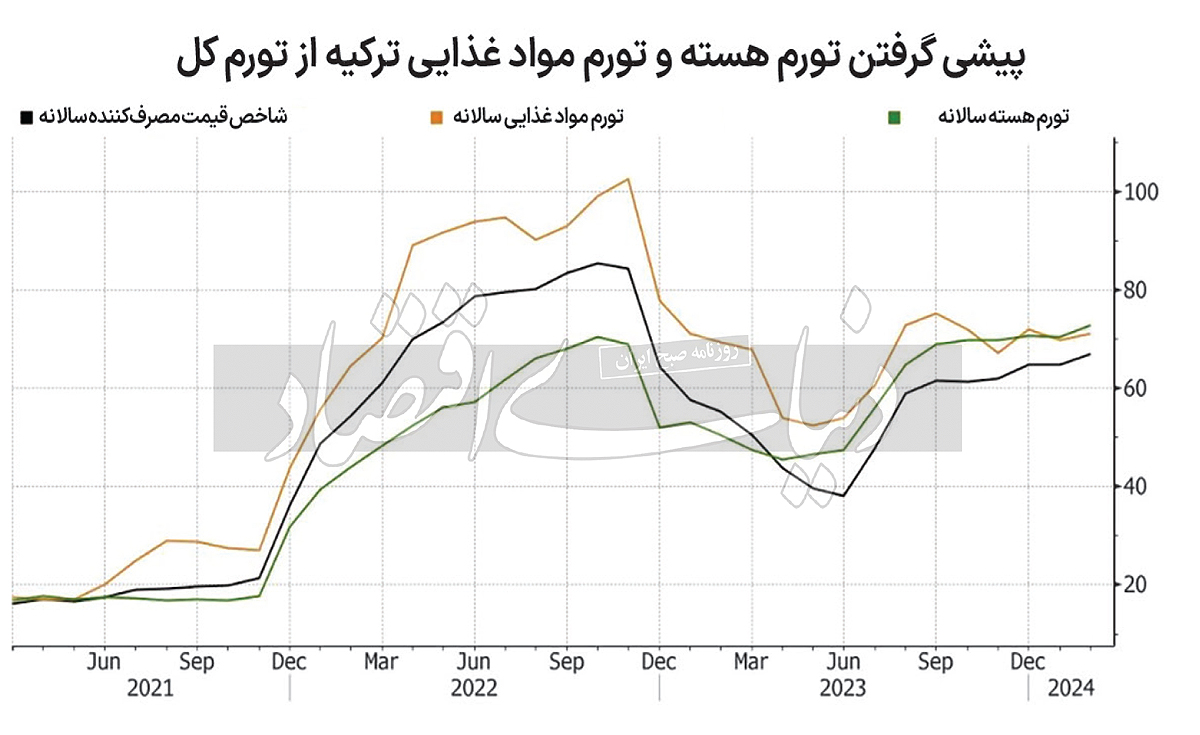 به گزارش نصر، بانک مرکزی این کشور پس از پایان دوره افزایش نرخ بهره، همچنان در حالت آمادهباش به سر میبرد و با دقت رشد سطح عمومی قیمتها را تحت نظر دارد. قیمتها در ماه فوریه بهشدت افزایش یافتند. این افزایش که تا حدی به دلیل رشد قابلتوجه حداقل دستمزد در سال جاری بود، برای چهارمین ماه متوالی تورم را بالا برد. تورم در فوریه به ۶۷.۱درصد رسید، درحالیکه در ژانویه ۶۴.۹درصد بود. پیشبینی اقتصاددانان بلومبرگ برای تورم در ماه گذشته ۶۶درصد بود. تورم ماهانه که از سوی بانک مرکزی ترکیه بهدقت رصد میشود، با وجود کاهش از ۶.۷درصد در ژانویه به ۴.۵درصد در فوریه، همچنان فراتر از پیشبینیها و به طور قابلتوجهی بالاتر از سطح آن در سهماهه چهارم است.