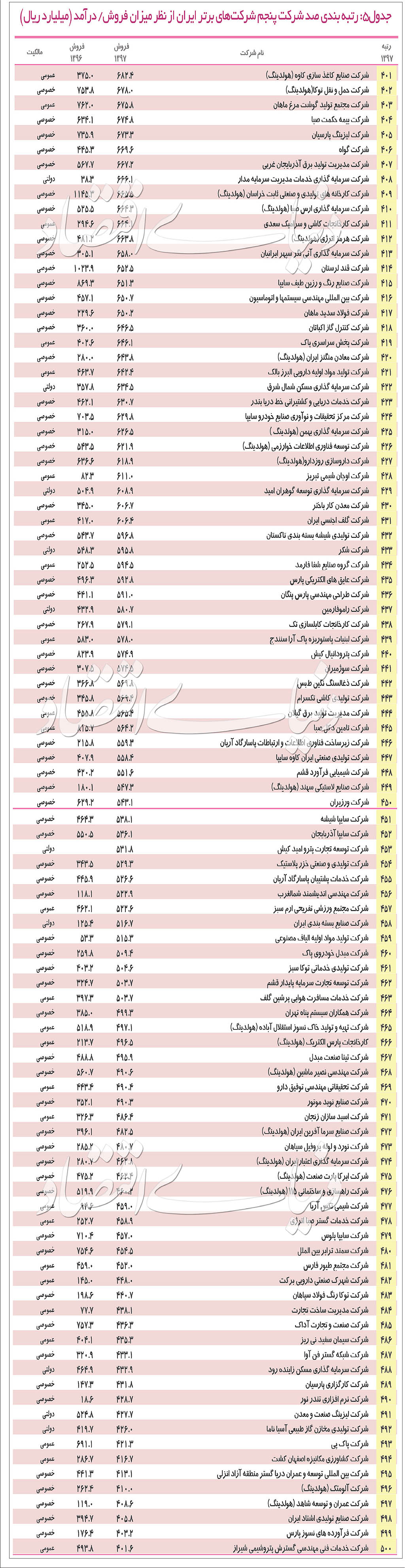 رتبه ۵۰۰ شرکت بزرگ ایران