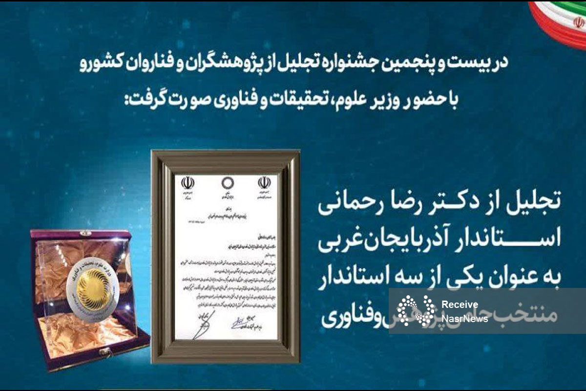 این لوح در بیستوپنجمین جشنواره تجلیل از پژوهشگران، فناوران و نوآوران برگزیده کشور که امروز در مرکز همایشهای دانشگاه شهید بهشتی تهران با حضور وزیر علوم، تحقیقات و فناوری برگزار شد، به استانداری آذربایجانغربی اهدا و استاندار آذربایجانغربی به عنوان یکی از سه استاندار حامی پژوهش و فناوری معرفی شد.