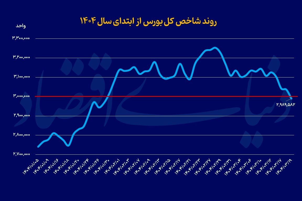 شاخص کل از تاریخ ۳۰فروردین سالجاری وارد کانال ۳میلیونواحدی شده بود و پس از ۳۶ روز معاملاتی، این کانال را ترک کرد. در کنار شاخص مذکور، شاخص هموزن نیز با افت 1.07درصدی مواجه شد که نشان میدهد فشار عرضه تنها محدود به نمادهای شاخصساز نبوده و کلیت بازار را تحتتاثیر قرار دادهاست. در بازار فرابورس نیز شرایط چندان تفاوتی نداشت و شاخصکل این بازار 0.51درصد عقبنشینیکرد.