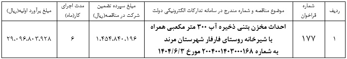 آگهی مناقصه عمومی (نوبت اول و دوم) | شماره 177 سال 1404