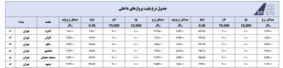 طبق بررسیهای صورت گرفته در حال حاضر سقف نرخ بلیت هواپیما در مسیرهایی از جمله تهران-مشهد حدود ۹۷۰ هزار تومان بود و یا مسیر تهران-تبریز حداکثر نرخ ۵۷۰ هزار تومان بود. در نرخ نامه جدیدی که ایرلاینها اعلام کرده اند قیمت مسیر مشهد به ۹۸۲ هزار تومان و مسیر تهران-تبریز به ۸۵۱ هزار تومان رسیده است.