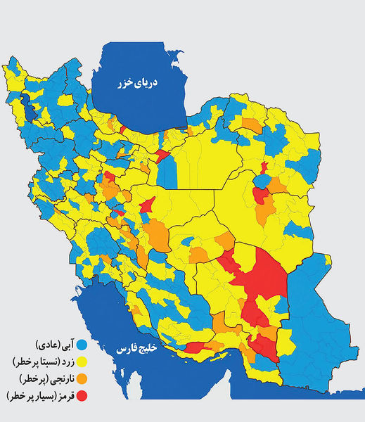 به این ترتیب درحال حاضر ۵۰ شهر در وضعیت قرمز و نارنجی قرار دارند و تعداد شهرهای آبی نیز با کاهش محسوسی از ۲۸۸ شهر به ۱۹۰شهر رسیده است. موضوعی که نشان میدهد خیزش کرونا درکشور آغاز شده و طی روزهای آینده باید در انتظار افزایش آمار بستری و به تبع آن افزایش مرگهای کرونایی باشیم. بنابر اعلام وزارت بهداشت، طی ۲۴ ساعت گذشته نیز۲۷۰۴ بیمار کووید-۱۹ در کشور شناسایی شدند که ازمیان آنها ۵۳۲ نفر بستری شدند. همچنین دراین بازه زمانی ۹ بیمار نیز به دلیل این بیماری جان خود را از دست دادند.